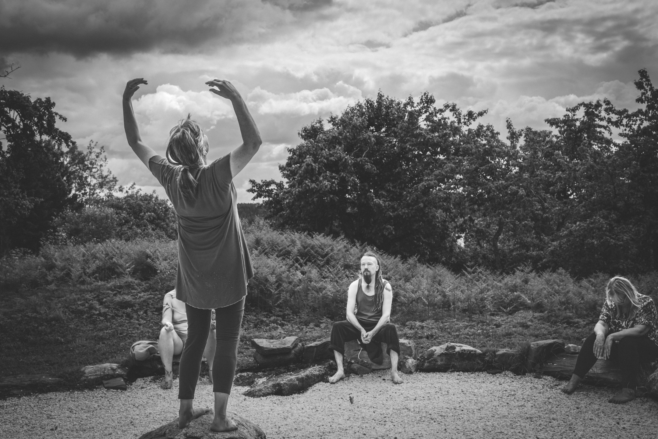 Rytminen, seremoniallinen prosessi tukee yhteisöllisen suhteen rakentamista niin ryhmään kuin luontoon kolonialismin sijaan. Tanssi-liiketerapia ja qi gong tukevat ihmisen kehitystä planetaariseksi kansalaiseksi.